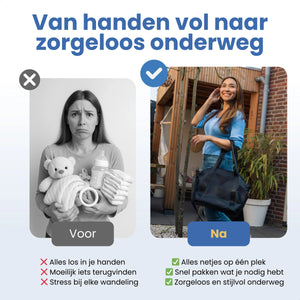 De Evite Blöjväska kombinerar stil, utrymme och praktisk bekvämlighet. Allt du behöver i en väska. Så att du aldrig saknar något, var du än är.