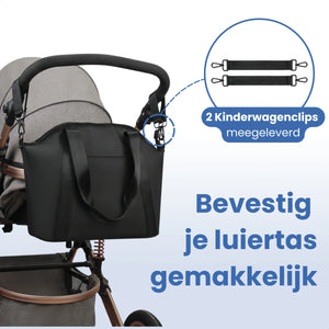 - Ingår: 1x Skötväska, 1x Axelrem, 2x Barnvagnsklämmor
