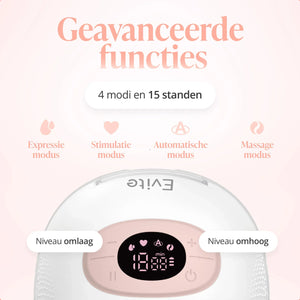 De Evite Handsfree Borstkolf is ontworpen voor moeders die vrijheid, comfort en discretie willen combineren. Draadloos, handsfree en fluisterstil zodat jij kunt kolven waar en wanneer je wilt. Met 4 programma's, 15 standen en een zachte pasvorm past hij zich moeiteloos aan jouw ritme aan. Ideaal voor thuis, onderweg of op werk.
